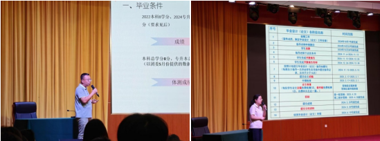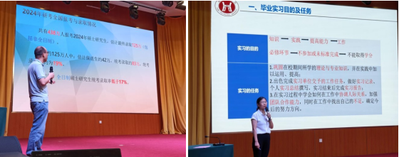 教学办主任胡鹏老师围绕毕业条件、学位授予条件、延期毕业及结业条件等展开解读。他结合过往案例,细致讲解学分要求、论文规范等关键内容,提醒同学们关注学业进度,避免因细节疏漏影响毕业,让同学们对毕业“门槛”有了清晰认知。教学秘书李慧老师介绍了毕业论文工作安排与答辩要求,从选题、开题到撰写、答辩,梳理全流程关键节点与时间安排,强调论文的学术规范性与创新性,为同学们开展相关工作指明路径。