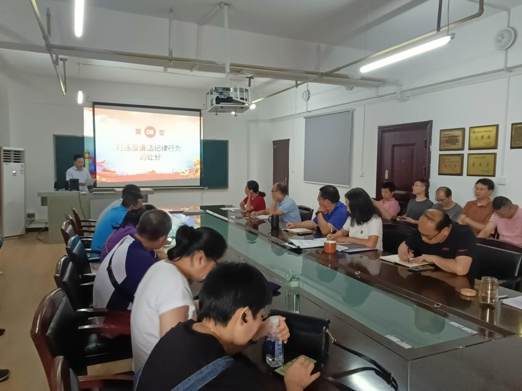 (本网消息)为深入学习和理解新修订的《中国共产党纪律处分条例》,强化党员教师的示范引领作用、筑牢纪律规矩意识,提升党性修养、促进党风廉政建设,6月17日下午,数理学院教工四支部支部书记石大为和教工三支部支部书记胡传峰分别以“对违反廉洁纪律行为的处分规定”和“以严明的纪律推进党的自我革命”为题在智慧大楼学院大会议室为数理学院全体党员上了专题党课。