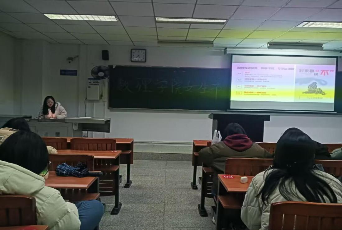 “三八”国际劳动妇女节前夕,数理学院全体女生汇聚J4-101教室,以“璀璨女生节,关爱女生展风采”为主题举办女生节活动。