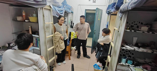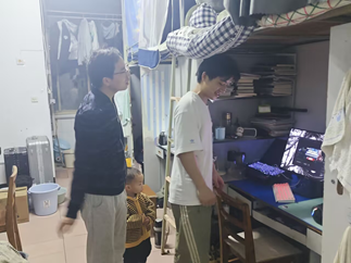 在专项检查过程中,各班班主任老师和学生权益部工作人员秉持严谨工作态度,实现住宿单元全覆盖式走访,核查学生返校情况,对于未及时返校学生做好了询问和情况记录。同时,检查团队严格依据《学生宿舍管理条例》,从卫生管理与安全管控双体系开展核查:一方面对地面洁净度、物品定置化管理等环境卫生指标进行量化评分;另一方面重点排查大功率电器违规使用、线路私接改造等安全隐患。每到一间宿舍,老师们以亲切的态度与学生们交流,详细询问了大家的假期生活和返校途中的经历,同时耐心倾听学生们在学习、生活等方面的想法和需求,并给予了针对性的解答和指导。