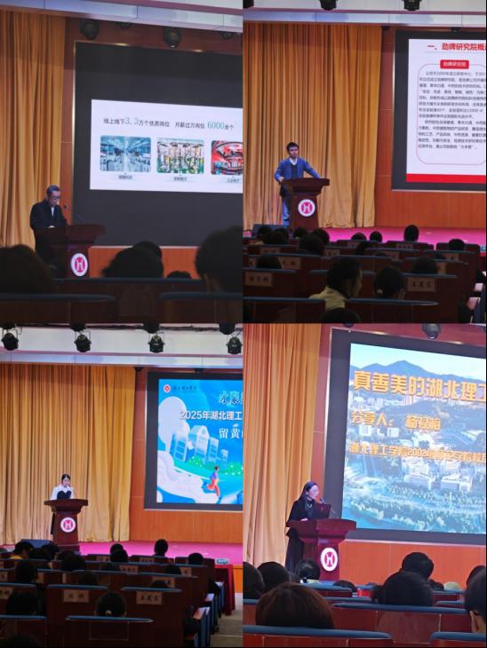 “荆楚大讲堂”设置多项议程,首先由黄石市劳动就业管理局人力资源服务办公室副主任、国家创业导师徐志学开展黄石城市推介及高校毕业生留黄就业创业政策宣讲,为学生解读黄石在就业创业方面的利好政策,明晰发展机遇。劲牌企业代表人、同时也是太阳集团校友介绍了公司发展历程、现有规模等。后续还安排了留黄就业校友分享等环节,通过校友的亲身经历,传递在黄石就业的成长故事与发展前景,为在校学生提供切实可行的就业参考。