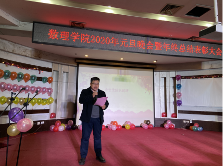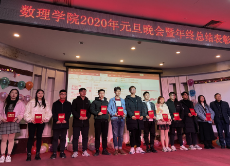 晚会开始,四位主持人闪亮登场,对到场的各位领导,老师以及同学们表示热烈的欢迎,随后在全场震耳欲聋的掌声中宣布元旦晚会正式开始。首先,院长余宏生教授上台致辞,他回顾2019,对数理学院所取得的成绩进行了总结,同时结合实际工作情况,继往开来,提出了数理学院2020年度的工作设想,希望同学们在新的一年能够更加努力再创新业绩。会上,领导班子分别为国家奖学金获得者、优秀学生干部、优秀学生标兵、优秀班团支部、文明宿舍获奖者代表颁奖,对他们优异的表现进行表彰。
