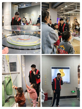 活动伊始,科技馆准备了一场精彩绝伦的舞动转陀螺机器人比赛,吸引了众多小朋友及家长的注意力,让参与者亲身感受到了当今科技的发展。随后,大家来到“探索与发现”展厅,志愿者们开始为小朋友们进行知识科普,先让小朋友们自己动手实验,然后通过观察实验现象志愿者们提出问题,小朋友们各种奇思异想的回答让现场活动氛围格外热烈。接着,志愿者们引导他们观察比较处于不同位置的物体有何特点,小孩子们积极发问,志愿者们详细回答。在他们催发“科学种子”的同时,也深受着展厅里科学文化的熏陶。