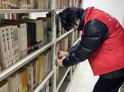 活动当天,图书馆内秩序井然。志愿者们身着统一的红色志愿马甲,在图书馆老师的指导下,迅速明确分工:有的负责将散落书籍归位,对照索书号精准摆放至对应书架;有的专注整理书架,将书籍按“从上到下、从左到右”的顺序排列整齐,剔除破损、污渍书籍;有的耐心排查错架、乱架书籍,逐一核对信息并做好标记;还有的协助整理报刊,分类装订往期刊物。遇到厚重的成套书籍,志愿者们相互配合、合力搬运;面对复杂的分类体系,大家虚心请教、反复核对,确保每一本书都“各归其位”。整个过程中,志愿者们始终保持专注认真,用耐心和细心为师生打造整洁有序的阅读空间。
