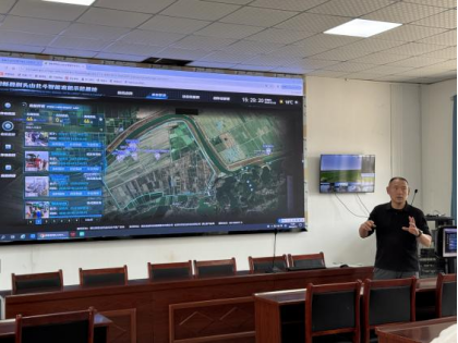 座谈会前,调研一行首先来到荆头山农机专业合作社,企业负责人陈平展示了荆头山北斗智能农机平台,详细介绍平台运行成效与实际应用场景,并就人工智能、大数据技术赋能智慧农业、助力乡村振兴等方面进行交流。