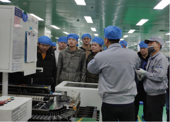 首先,海成电子制造部负责人朱志双带领数理学院师生对公司生产以及生活区域进行了参观。朱总介绍了公司的主要产品技术、生产流程以及楼层分布。其间,对于同学们的提出的问题,他也做出了详细的回答。
